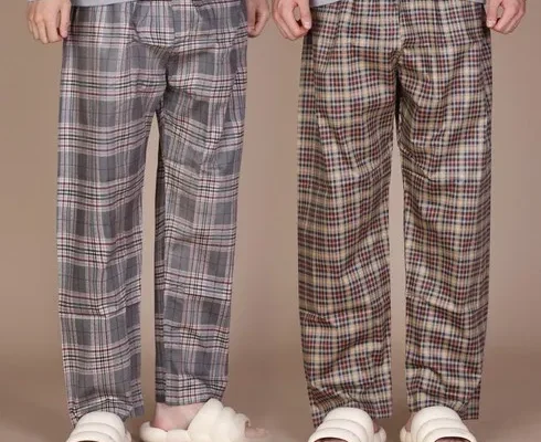 국산 베이직 순면 체크 파자마 잠옷바지 2종세트 남성용