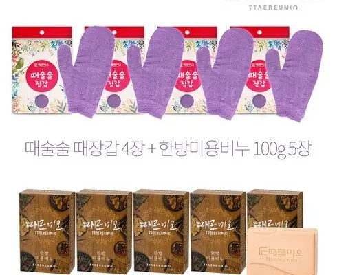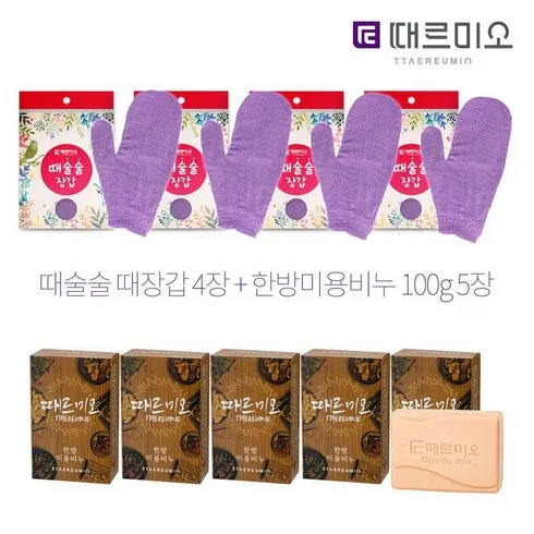 ttaereumio[때르미오] 때르미오 때술술 기본세트 9종 (한방미용비누 100gX5장+때장갑 벙어리형 4장), 단일옵션