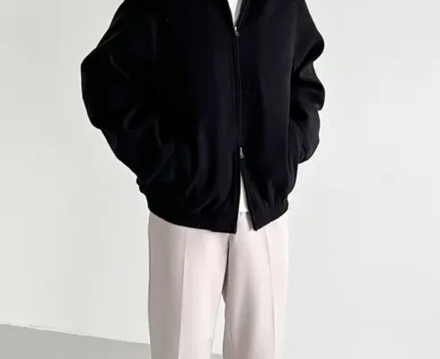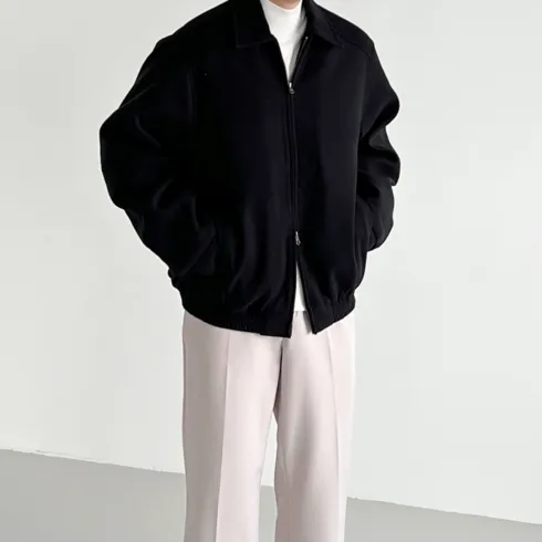 코튼 미니멀 투웨이 카라 울 블루종 패딩 점퍼 자켓 (3color)