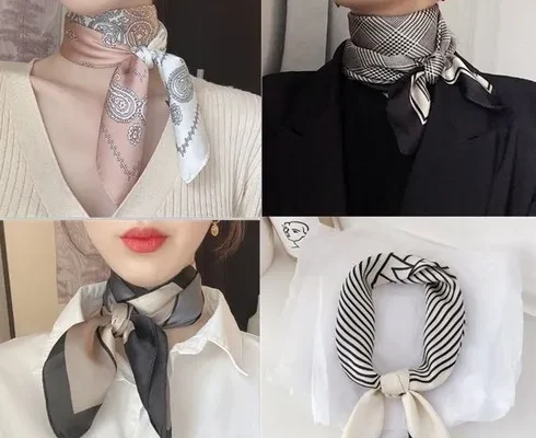 (태양유통) 여성 쁘띠 스카프 정사각 4종세트
