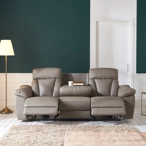 [삼익가구] 크루즈 USB 3인용 전동 리클라이너 가죽소파(양방향), 라이트그레이