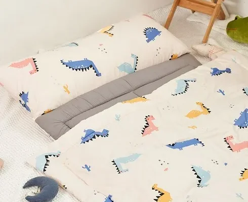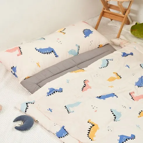 에시앙 공룡 사계절 낮잠이불 + 패드 + 베개 + 베개솜 세트 일체형, 베이비핑크