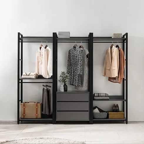 [전문시공][국내생산 친환경마감재] (세트) 상일리베가구 아이언 철제 드레스룸 옷장 행거 시스템행거 1600 2400 3200, 4. 블랙오크