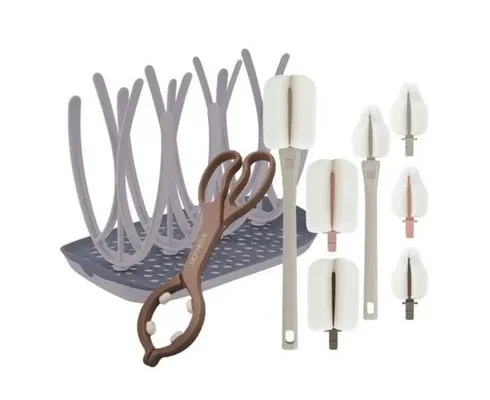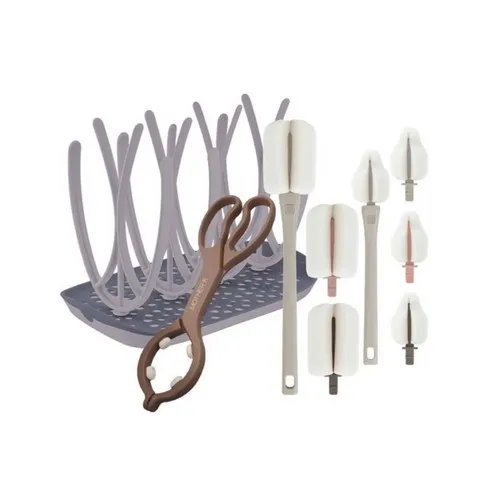 마더케이 신생아 수유용품 세척패키지, 젖병건조대(베이지), 브러쉬(코코아), 젖병집게(코코아)