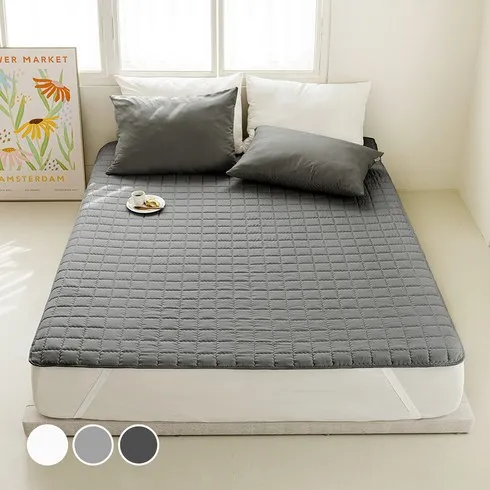 디 베이직 누빔 고정밴드 침대패드, 그레이
