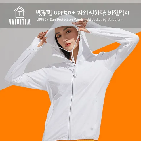 밸류템 UPF50+ 남여 자외선차단 바람막이 후드집업티 썬캡모자 쿨 등산 여행 슬림핏