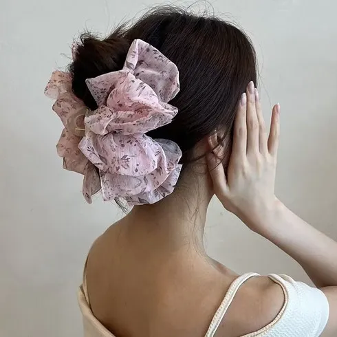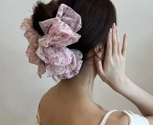 론조모니 예쁜 대형 쉬폰 왕집게핀