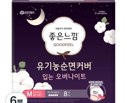 좋은느낌 유기농 입는 오버나이트 M, 팬티형, 8개입, 6팩