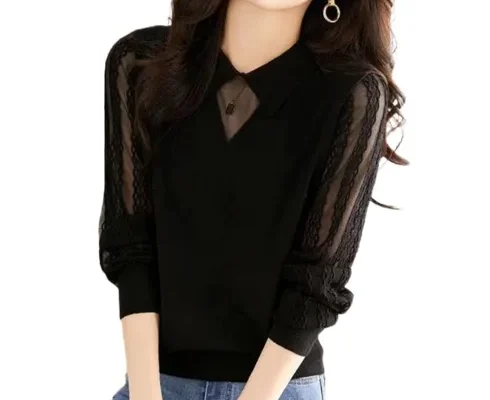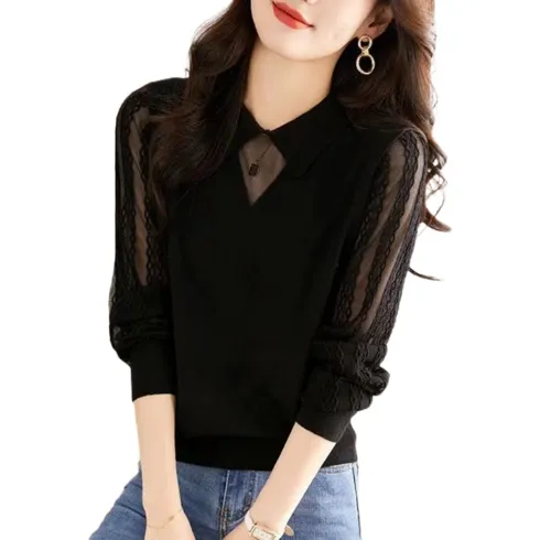 나드리 여성 레이스 시스루 이너 긴팔 니트 블라우스