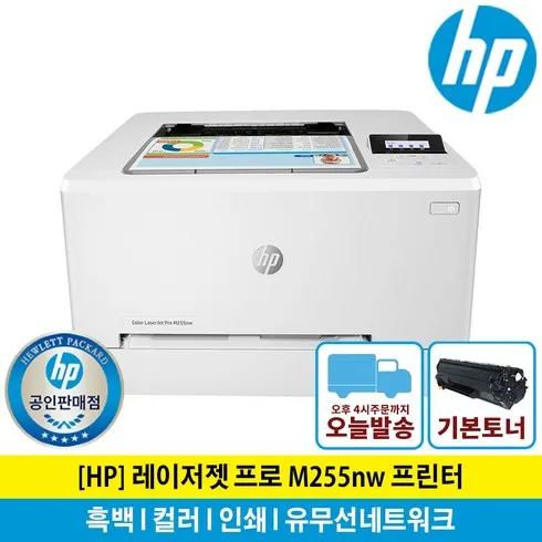 [해피머니상품권 행사] HP 컬러 레이저프린터 M255nw (유무선 네트워크 토너포함 M254nw후속) 레이저 프린터