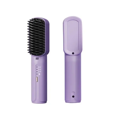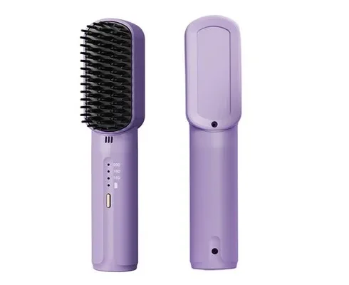 뉴스타 미니 휴대용 무선 빗 고데기 음이온 브러쉬타입 뿌리볼륨 헤어 매직기, 보라색
