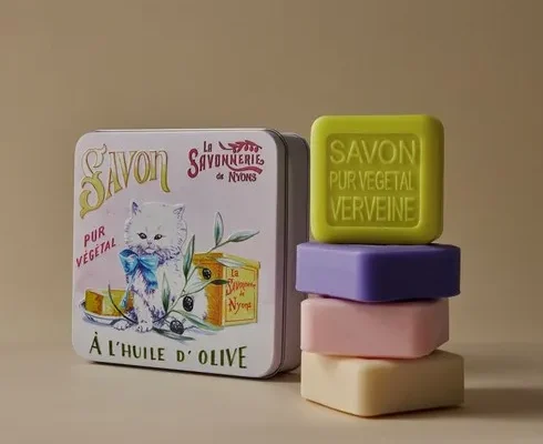 라사본느리드니옹 프랑스 천연 비누(100g*4개) 대형 틴케이스, 향수비누_바구니속 고양이(33566)