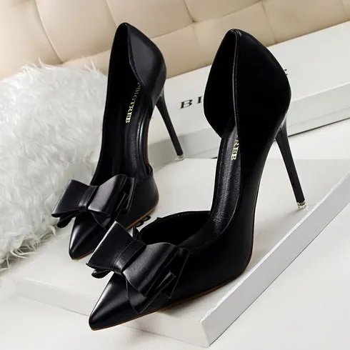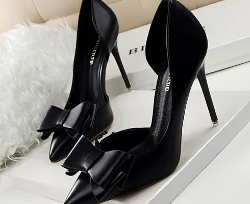 ANYOU 달콤한 리본 스틸레토 힐 펌프스 펌프스 사이드 펀칭 단화 하이힐