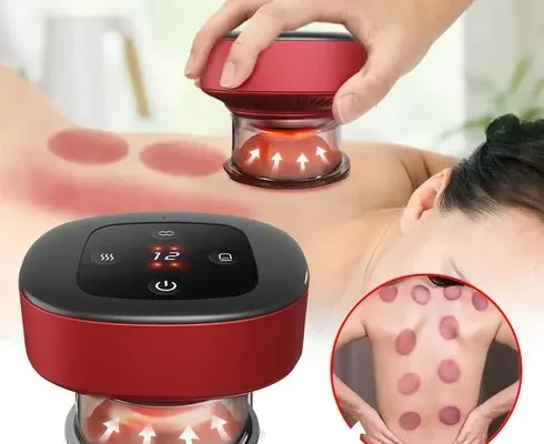 Kingfishe 온열 부항기 흡착 괄사 전동 무선 휴대용 충전식 마사지기, 레드