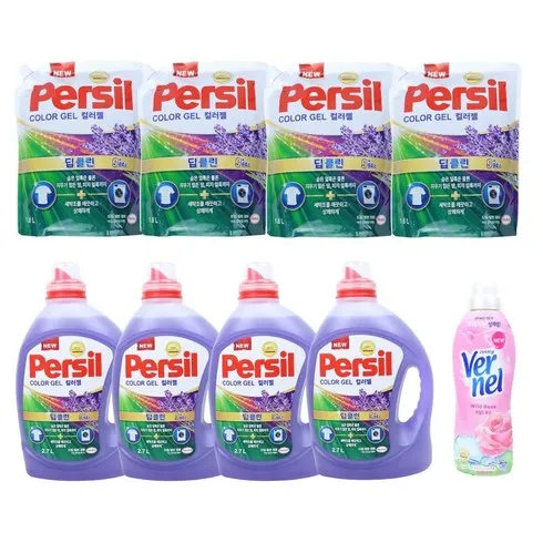 퍼실 퍼실 딥클린플러스 컬러젤 라벤더(2.7LX4+1.8LX4)+버넬 1통, 1세트