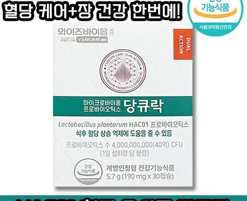 [ 식후 혈당 상승 억제도움 ] 유한양행 와이즈바이옴 당큐락 마이크로바이옴 프로바이오틱스 HAC01 유산균 락토바실러스 플란타럼 플란타룸 혈당케어 식약처 혈당 기능성 인정 제품, 1개, 30정