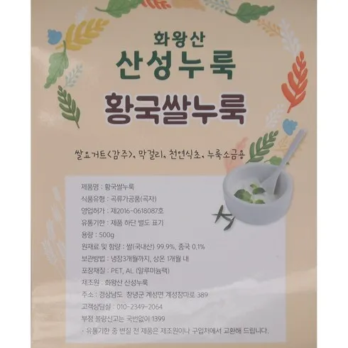 화왕산산성누룩 쌀알누룩(황국-천연단맛 요거트 현미발효 효소 식물성 유산균) 500g, 3개